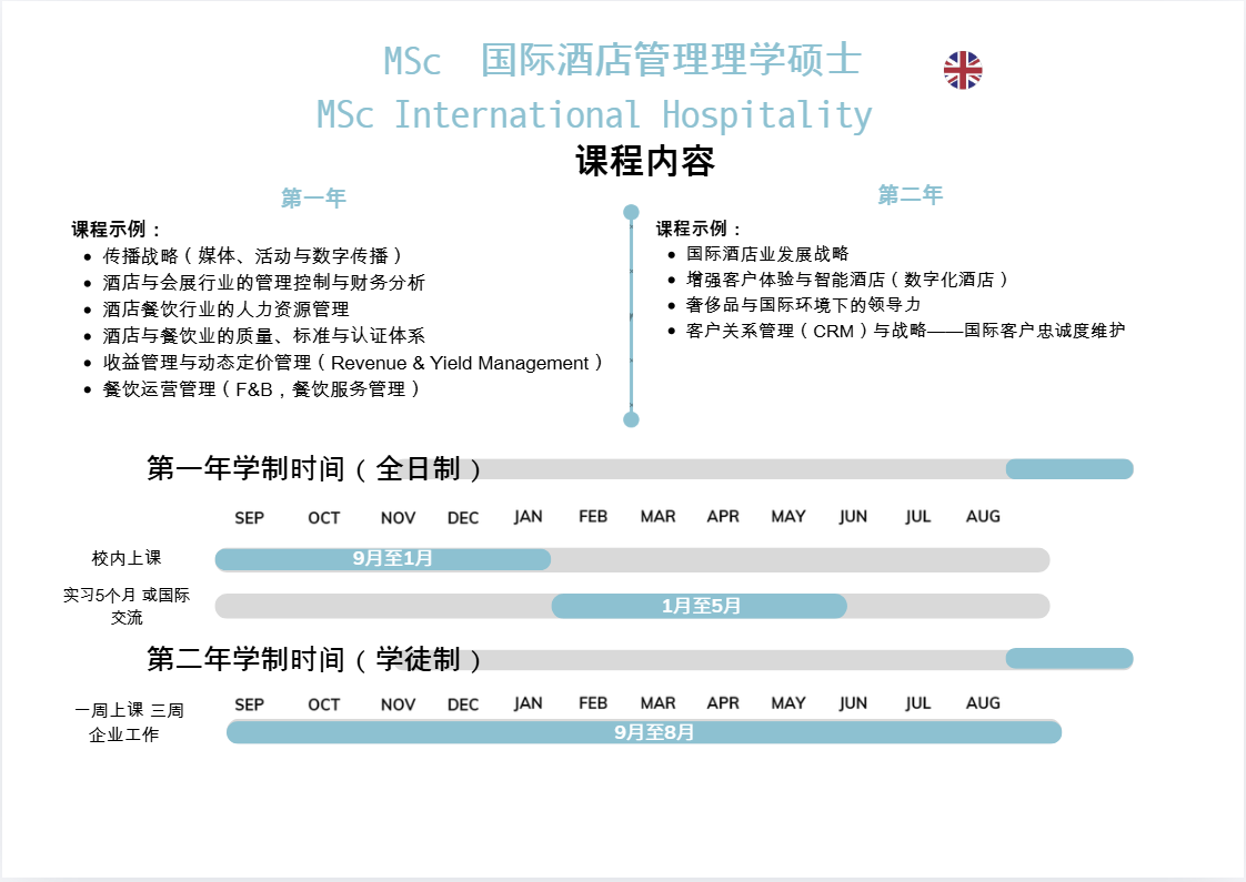 国际酒店管理理学硕士 Master of Science (MSc) International Hospitality (Bac+5)