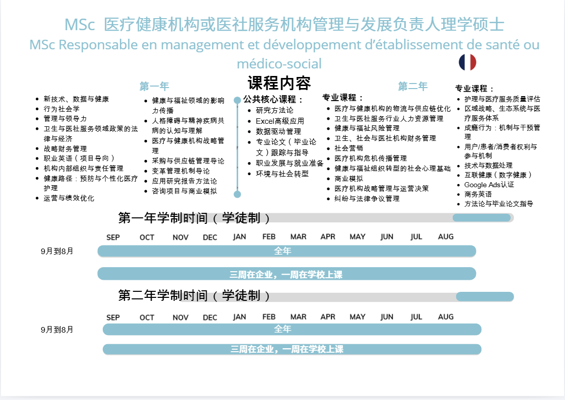 医疗健康机构或医社服务机构管理与发展负责人理学硕士- Master of Science (MSc) Responsable en management et développement d’établissement de santé ou médico-social(Bac+5)